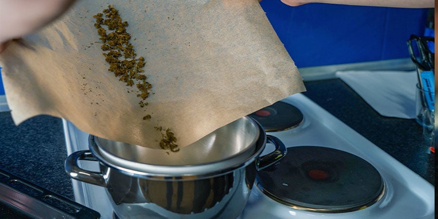 Rassemblez les ingrédients et le matériel ci-dessus, puis suivez ces étapes simples pour réaliser une huile de coco infusée au cannabis puissante et savoureuse.